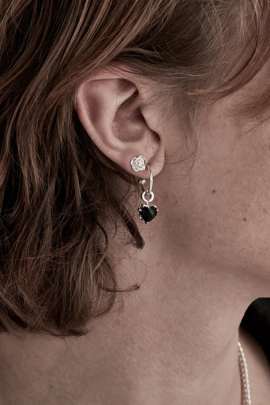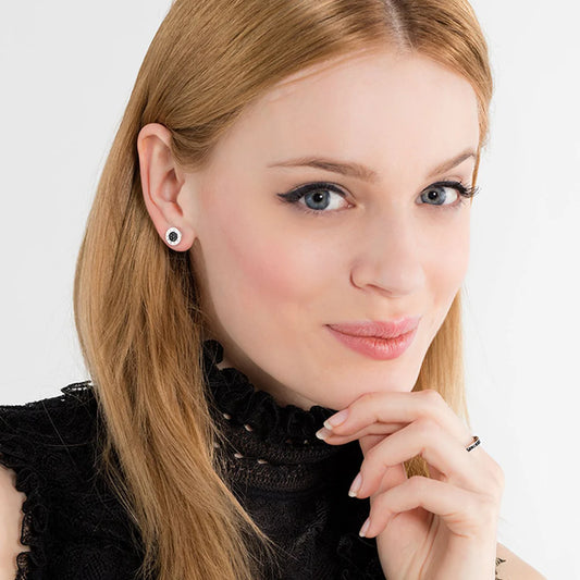 ROUND BLACK "CLASIC PAVE" EAR STUDS