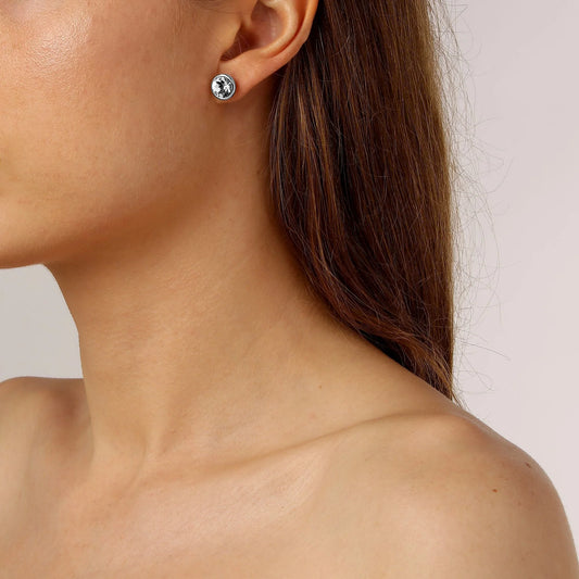 DEXTERA STUD EARRINGS - WHITE, RHODIUM