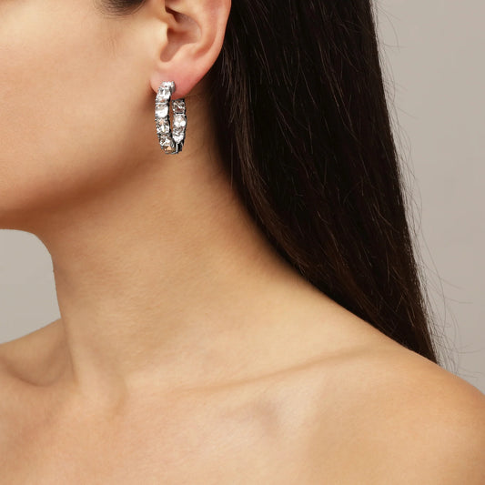 GRETIA SHINY SILVER CRYSTAL EARRINGS