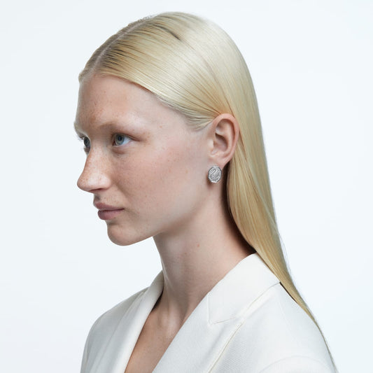 SIGNUM SWAN STUD EARRINGS - WHITE, RHODIUM