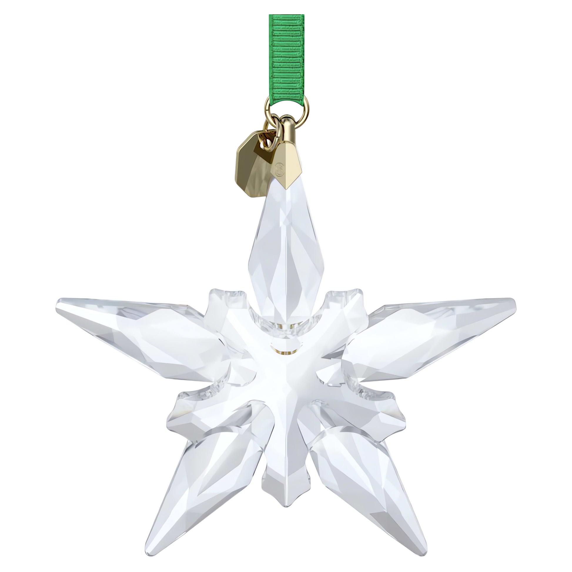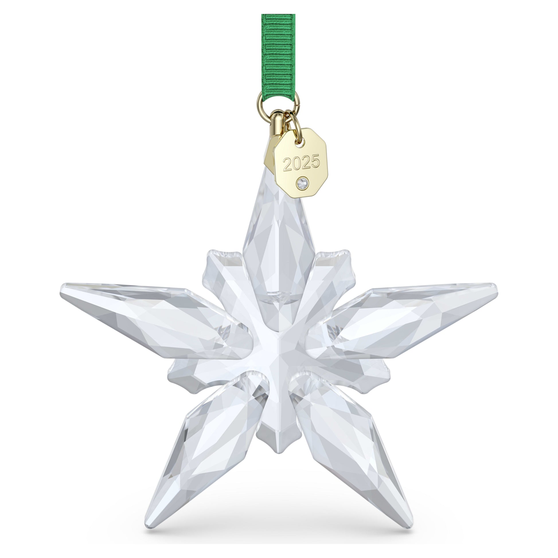 Embrace one of the traditional highlights of the season with this Swarovski Annual Edition Ornament. Suspended from a green grosgrain ribbon with champagne gold-tone accents, the star-shaped design is precisely cut with 170 light-catching facets, beautifully embodying Swarovski’s complex simplicity and technical skill. The design is completed with an engraved 2025 tag. Perfect for hanging on a decorative tree, in a window or around the home, this ornament is a truly wondrous way to highlight your holiday celebrations. Decoration object. Not a toy. Not suitable for children under 15.