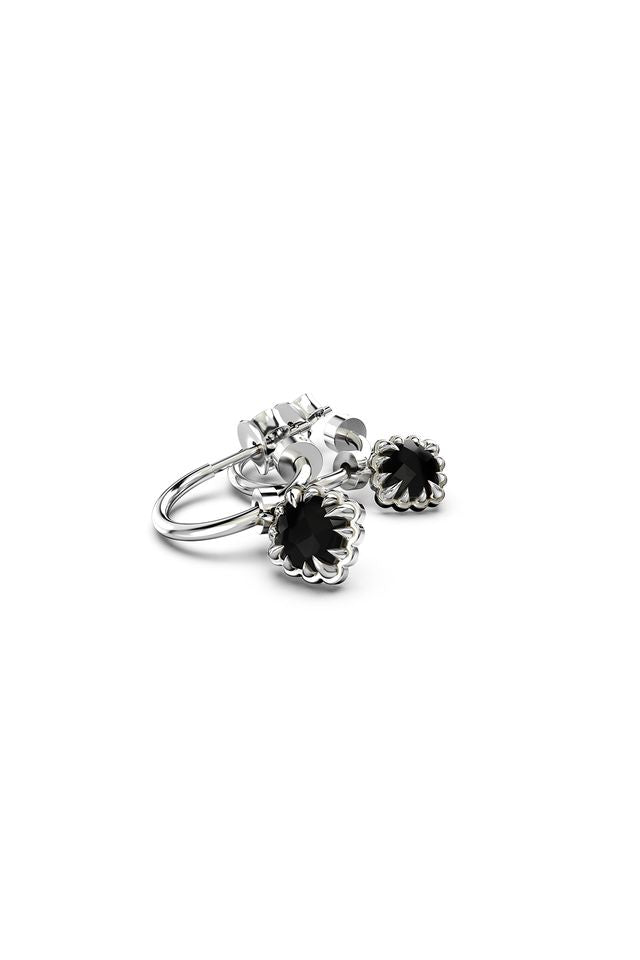 An all-new style by Stolen Girlfriends Club - The Baby Claw Sleeper Earrings feature faceted moody onyx stones set in their signature claw design, paired with sterling silver hoops.