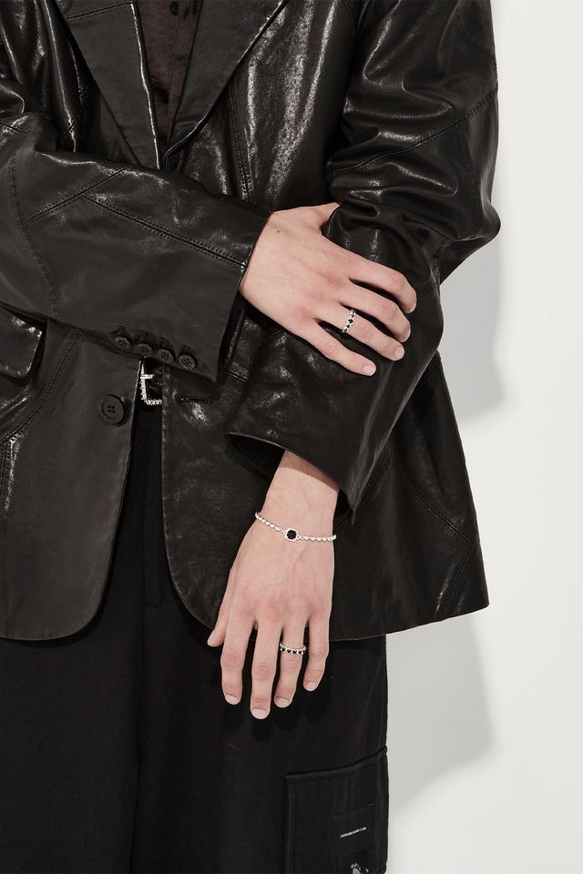 The Baby Claw Ball Chain Bracelet by Stolen Girlfriends Club is crafted from sterling silver and set with a single heart-cut black onyx stone held in their signature claw setting. The pendant sits along a fine ball chain with a polished finish and can be adjusted from 20cm to 18cm for a close fit. Designed to layer with minimal cuffs or worn alone as a subtle accent.
