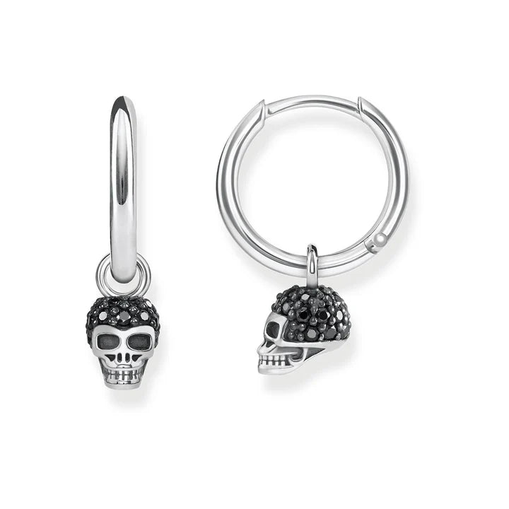 Expressive, sparkling skull highlights provide a particularly rock’n’roll look for these hinged hoops. The look acquires individual nonchalance when combined with other hinged hoops.