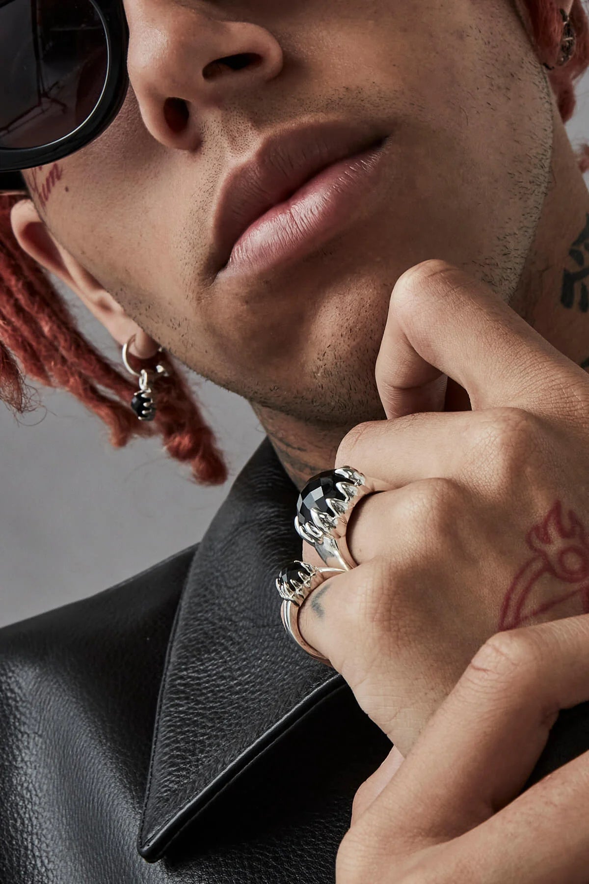 Our iconic Claw Ring is a tough-yet beautiful statement ring crafted with high polish sterling silver and set with a moody natural onyx stone - offering powerful protective properties to it's wearer. Each natural stone presents its own hues – no two are the same.