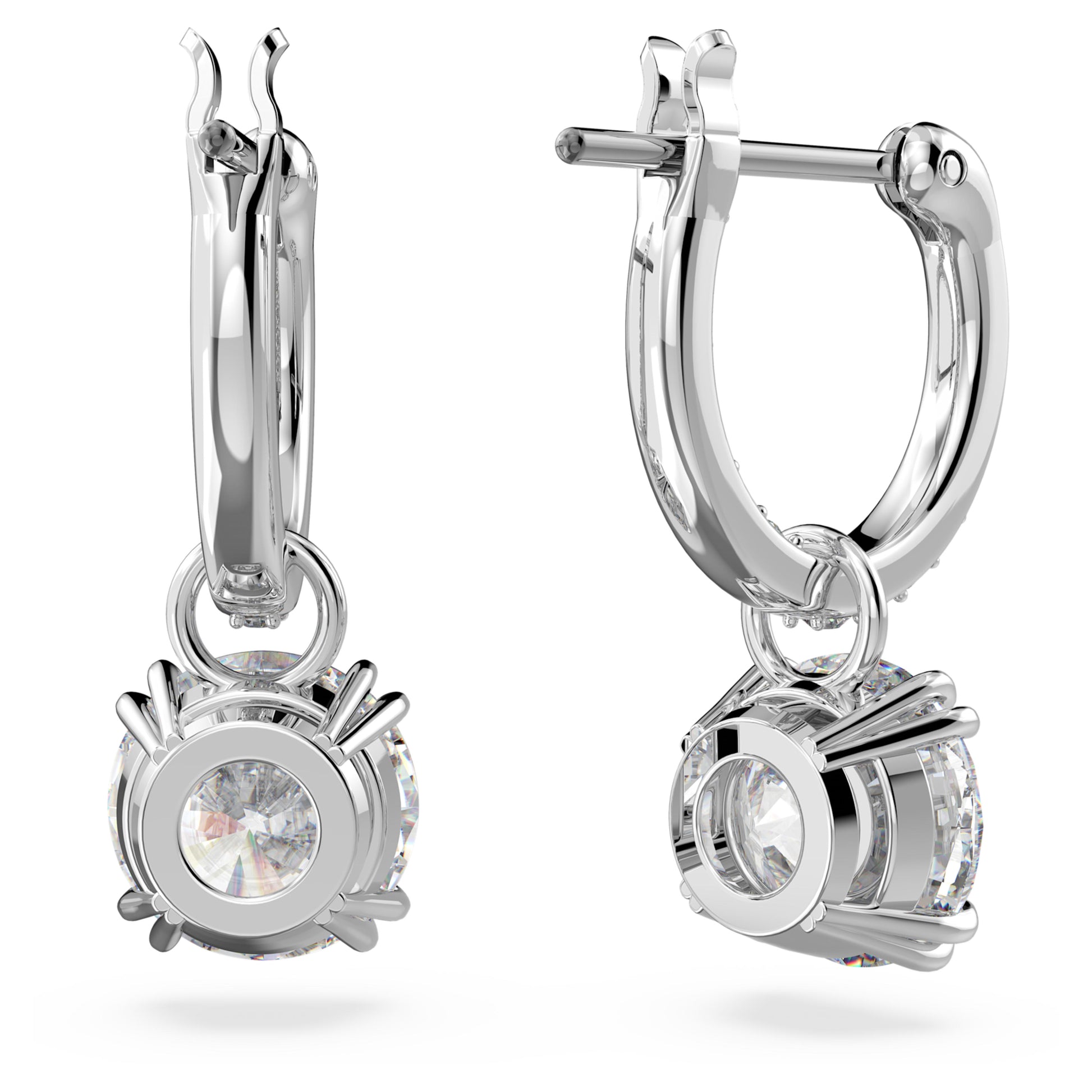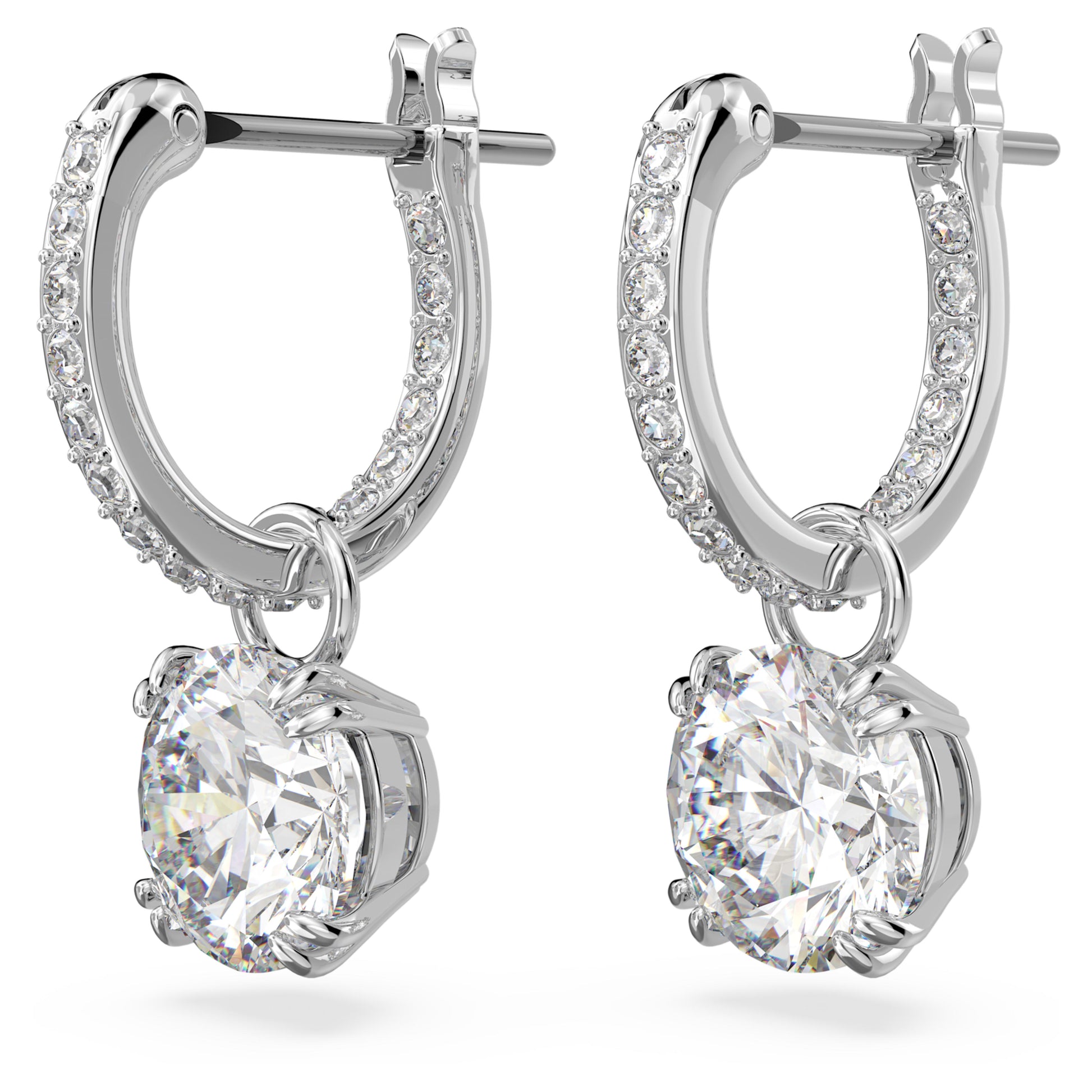 These mesmerizing drop earrings from the Constella family have wear-forever power. Striking the balance between dramatic and refined, dazzling centre stones are enhanced with pavé on the gallery and hoops, which are set with rhodium plating. Wear them with your hair tucked to really let them shine.