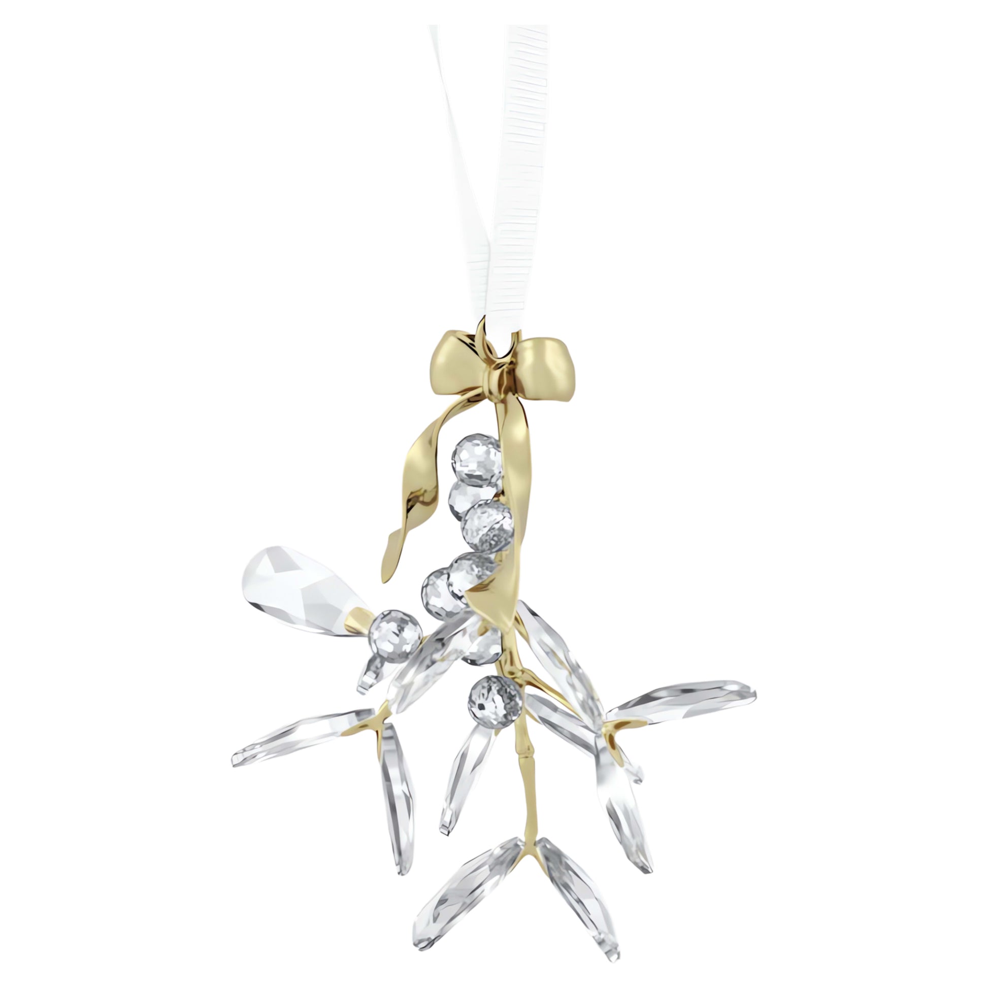 This luxurious ornament is the perfect excuse to share a festive kiss. Suspended from a white grosgrain ribbon, the traditional mistletoe is crafted in glossy champagne gold-tone metal, with radiant clear crystals used for the leaves and berries. With a total of 1,104 facets, the design will create endless light reflections across your holiday décor. Hang it somewhere prominent to celebrate the joy of the season. Decoration object. Not a toy. Not suitable for children under 15.