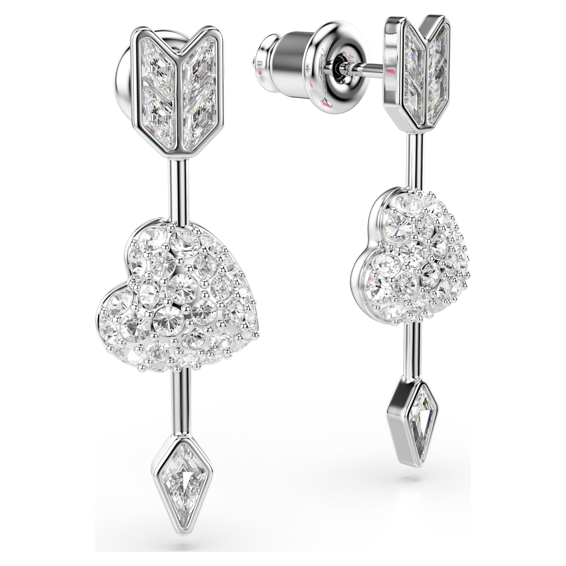 IDYLLIA DROP EARRINGS HEART W ARROW - WHITE, RHODIUM