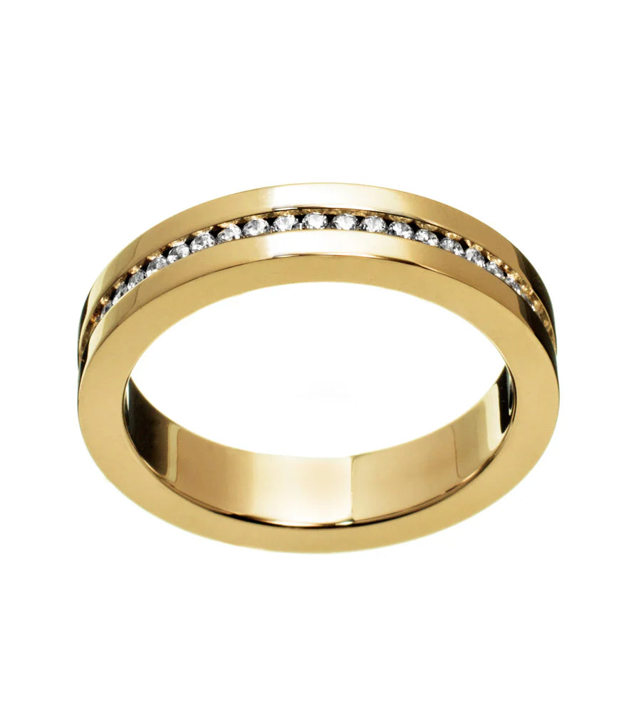 The Josefin ring is elegant in its simplicity and quickly becomes a favourite. With the shiny steel and row of stones set around the ring, it dazzles at night and looks cool during the day.