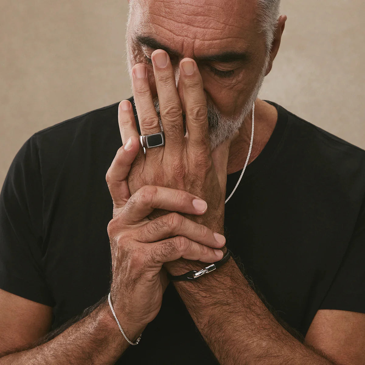 The Kinship Bracelet is a timeless expression of enduring connection. Its smooth leather strap and hinged stainless steel clasp deliver strength and style with an understated aesthetic. The precision engineering of this symbolic piece reflects NAJO’s artisanal approach to quality. Subtle enough for everyday wear, it transitions effortlessly between casual and formal attire.