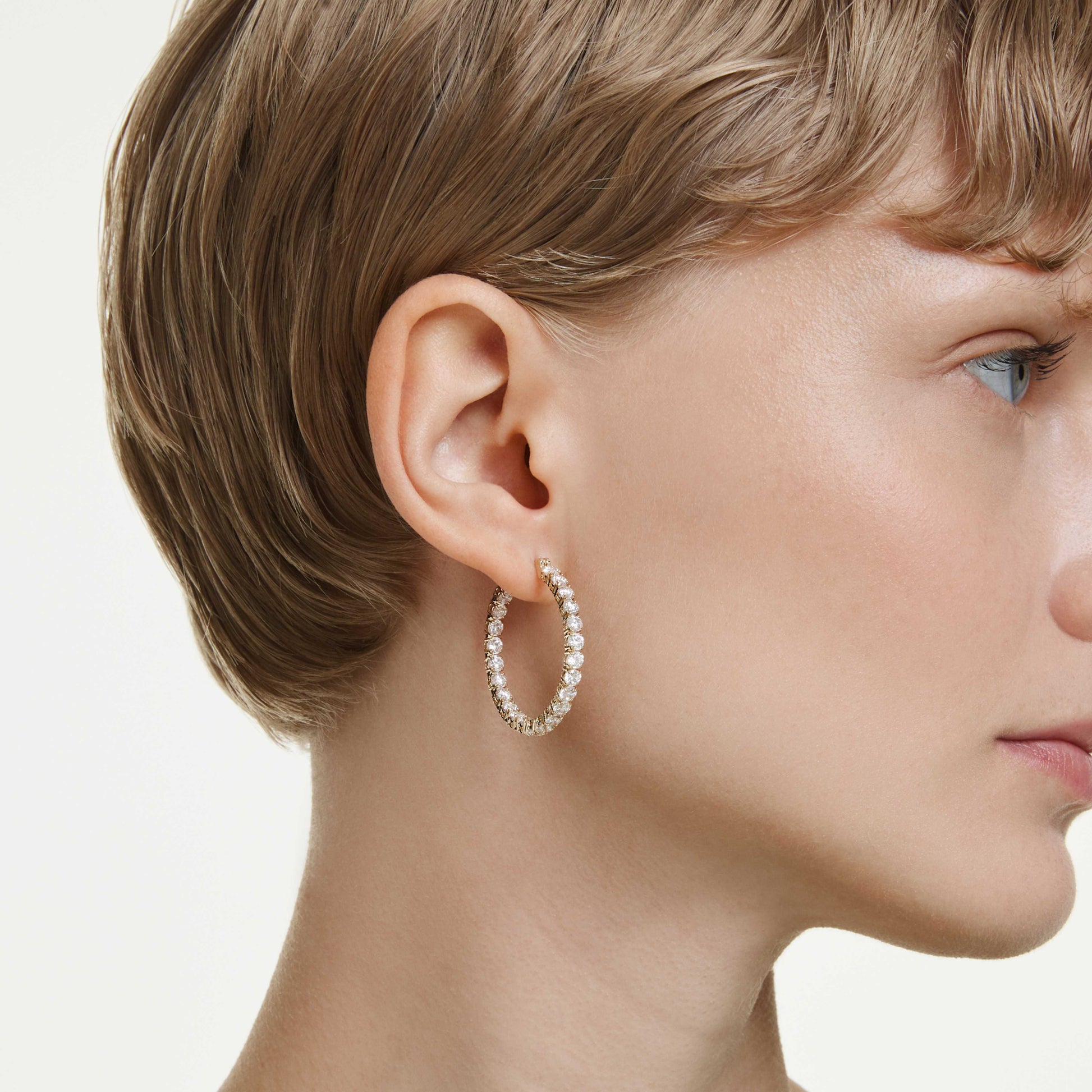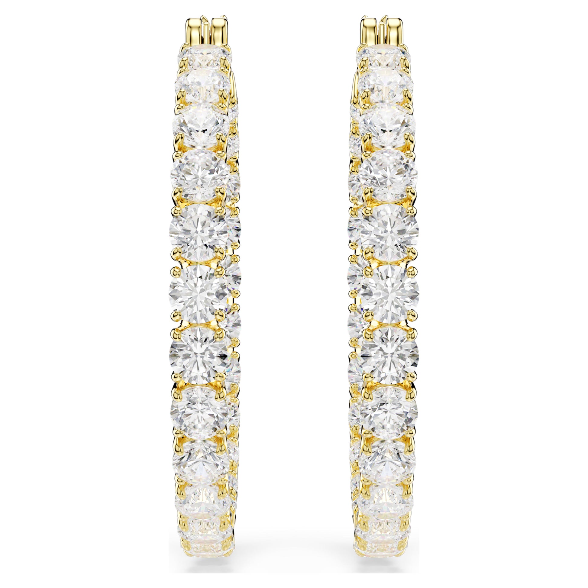 These perfectly formed Matrix hoop earrings are defined by the timeless look of round-cut crystals and gold-tone plated metal. It’s a sublime combination that is essential to any jewellery box. Reach for these hoops when circles of pure radiance are called for.