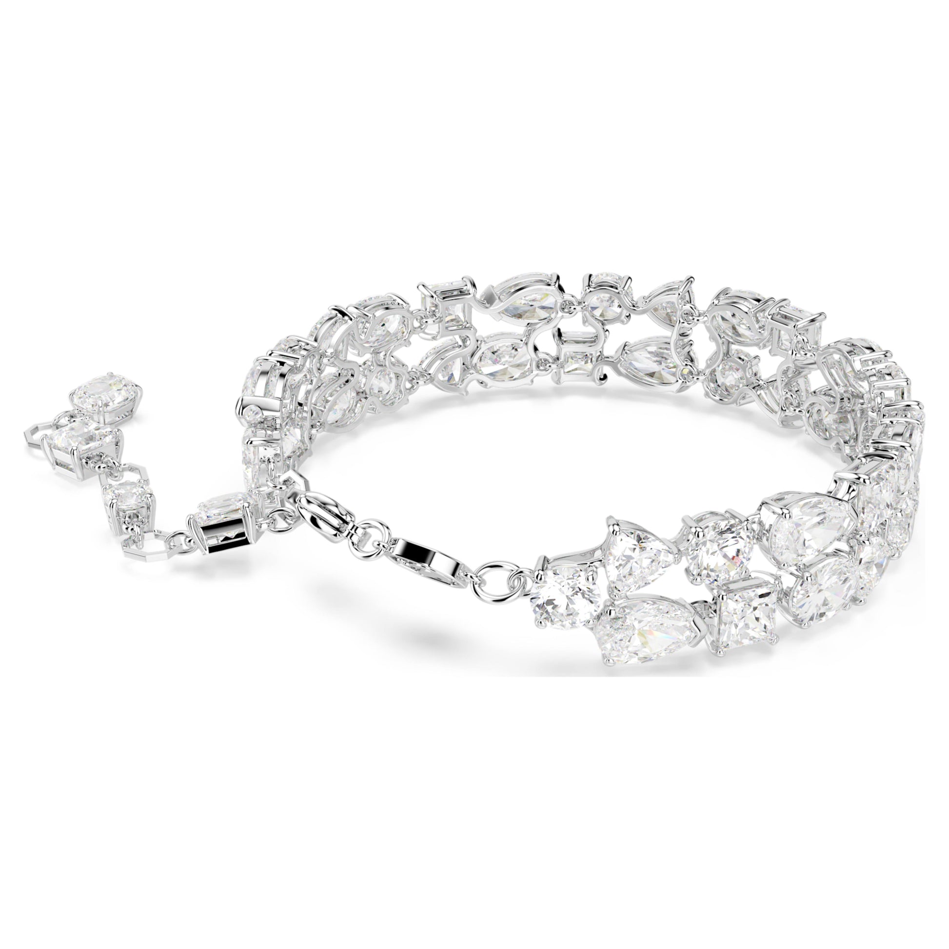 Make this extraordinary double-row bracelet one of the defining pieces of your jewellery collection. The rhodium plated design combines a radiant cluster of prong-set Swarovski Zirconia in a dramatic mix of cuts finished with a lobster closure. For added luxury, the hanging elongation features a string of Swarovski Zirconia. Pure elegance for your own evening style, or a wondrous gift for a loved one.