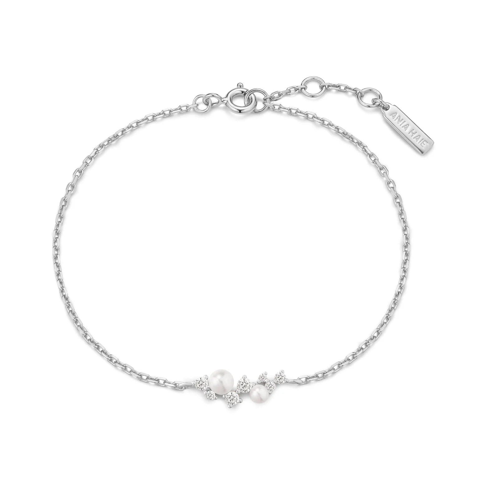 Artfully arranged in a delicate, blossom-like formation, this bracelet brings together luminous shell pearls and brilliant cubic zirconia stones for an effect that is both refined and distinctive. Designed for those who appreciate thoughtfully curated details, it catches the light with a soft radiance and subtle sparkle. Layer it with station chains to create a look that’s uniquely yours - elevating your everyday style with quiet individuality.