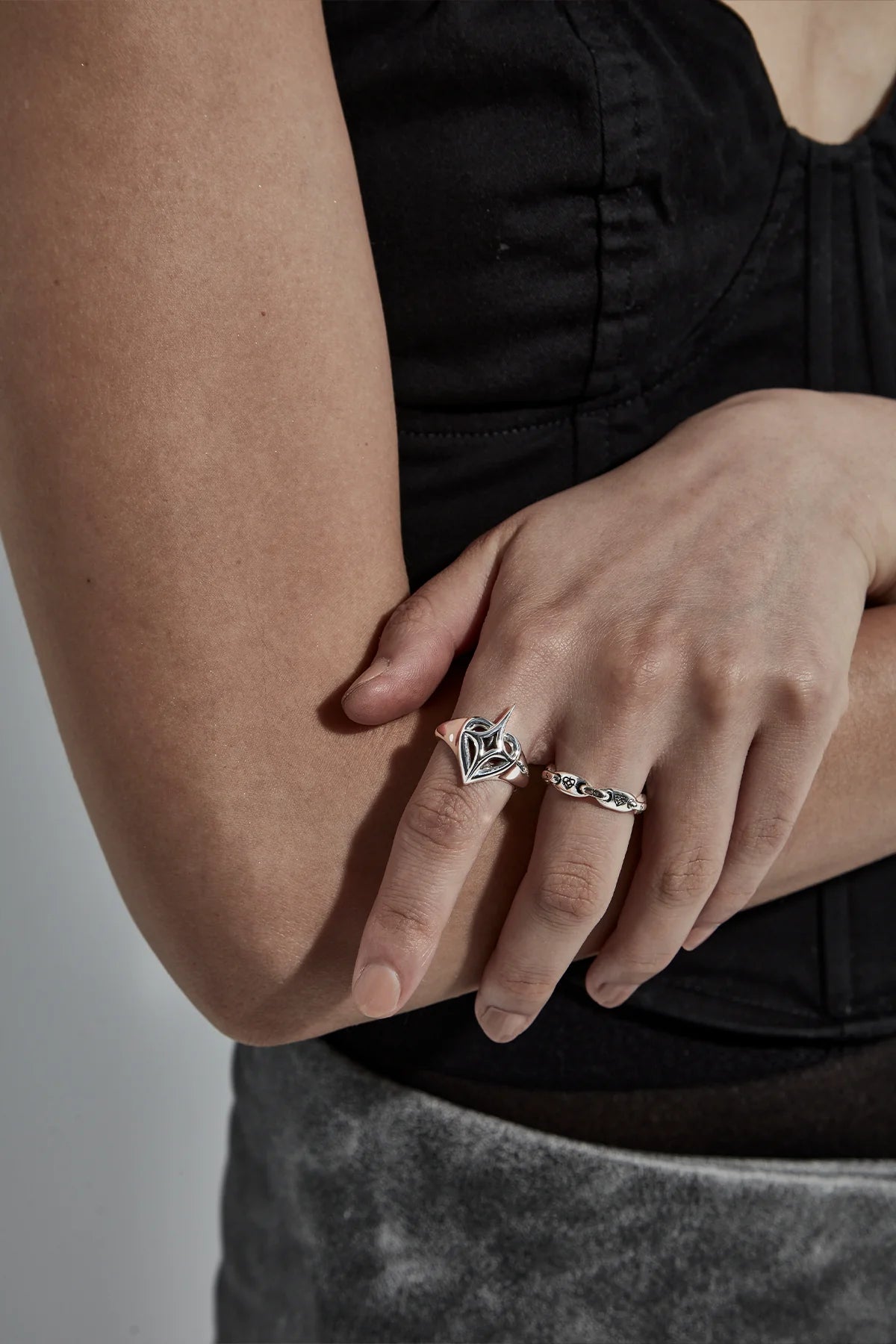 This signet-style ring is crafted in solid sterling silver, accented with dark oxidised detailing. The tapering band features our signature Celestial Heart motif.
