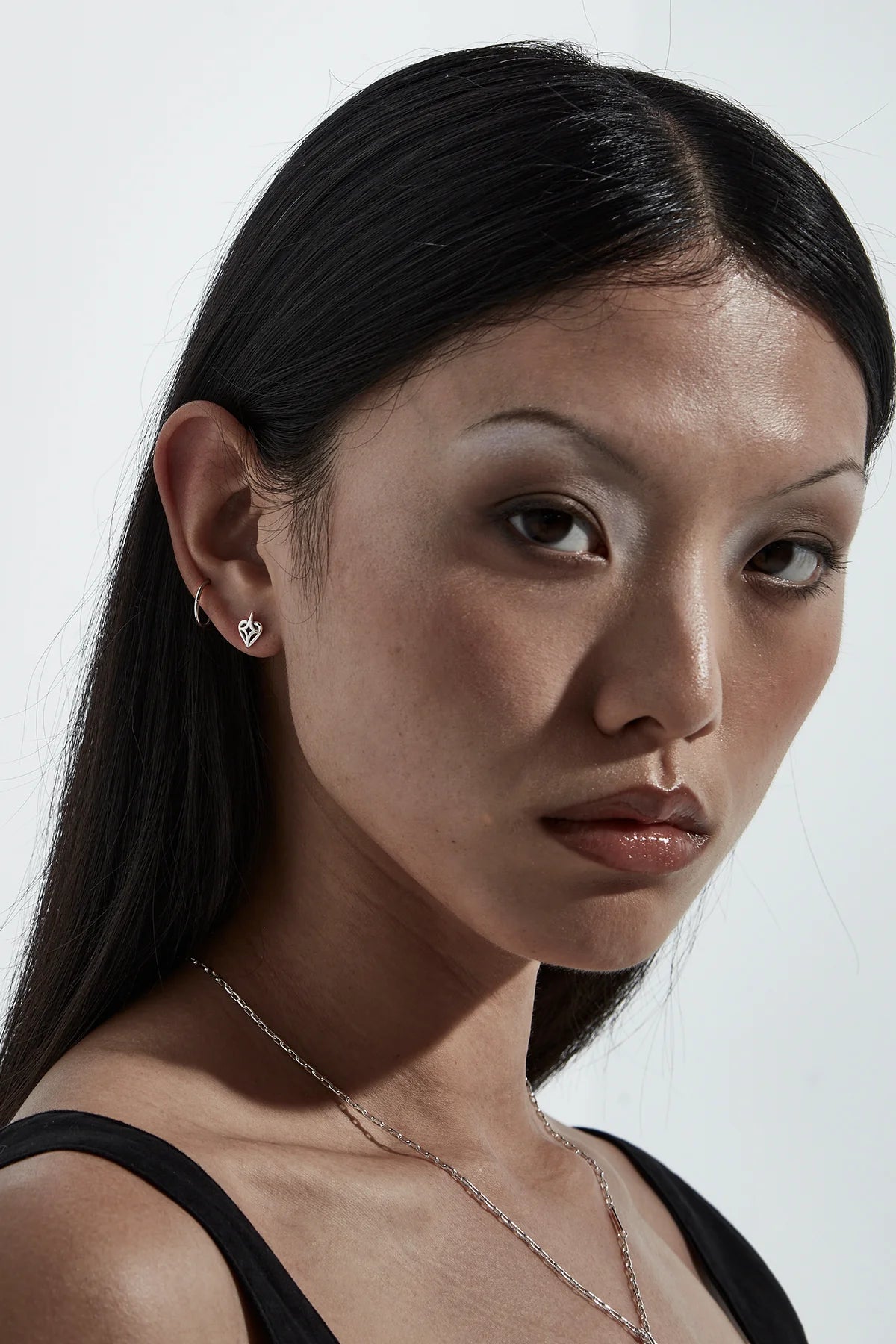 Crafted in sterling silver with oxidised accents, these celestial stud earrings feature North Star and Heart charms—symbols of love, guidance, and inner clarity.