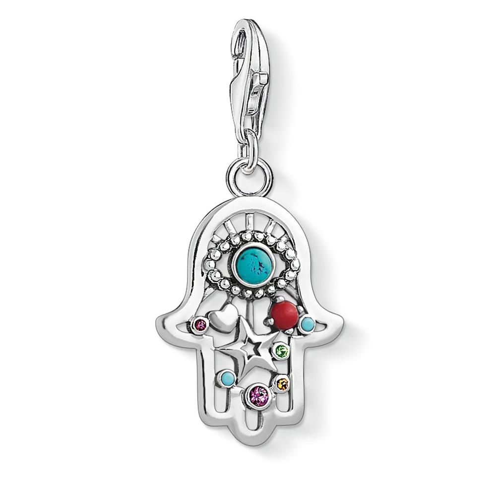 Filigree eye-catcher with protective function: The Hand of Fatima designed as a Charm with Nazar’s Eye detail, enhanced with high-quality stone embellishment.