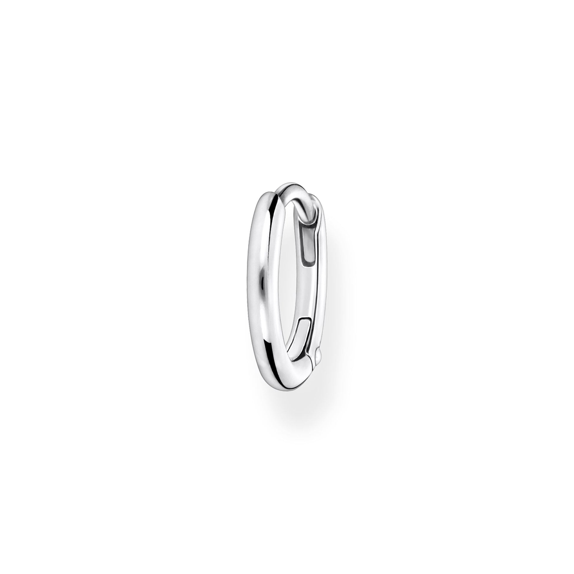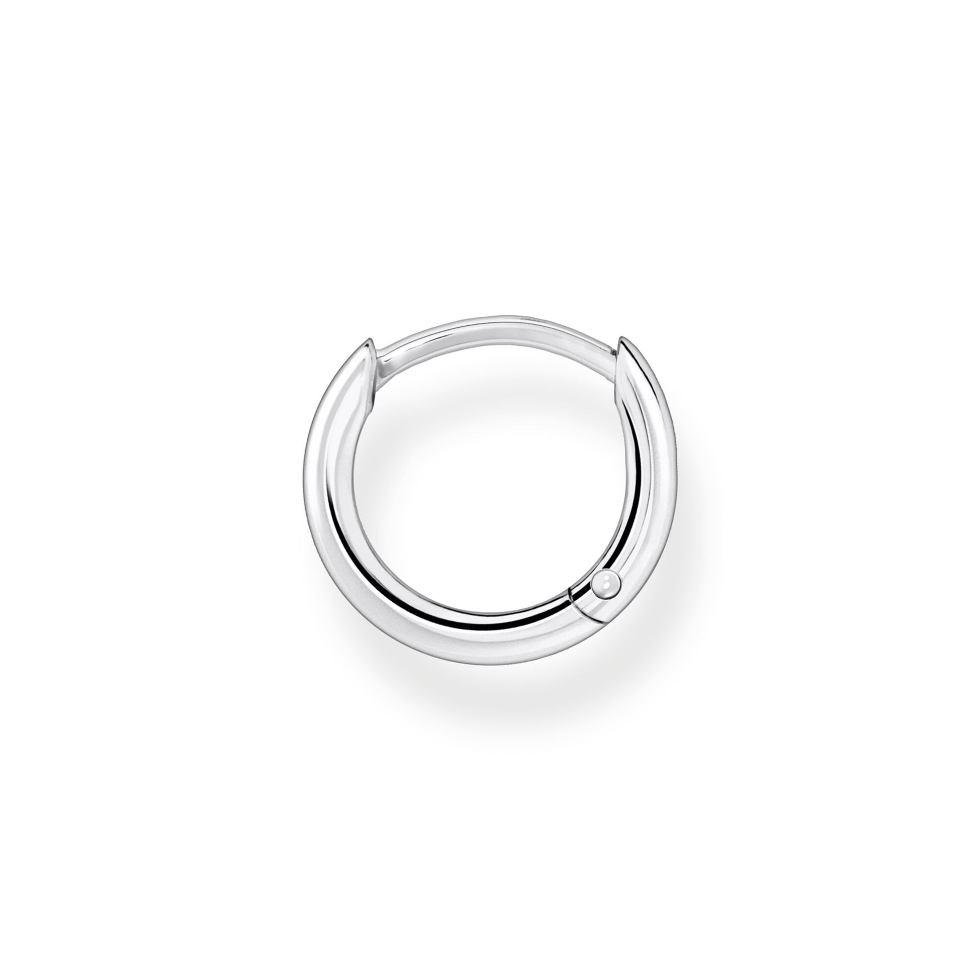 Cool elegance meets purist looks: This simple chunky hoop earring made from 925 Sterling Silver sets highlights with its clean design. The outside diameter is 13.5 mm. The classical circular shape of the single hoop earring underlines every look: Combine it with other earrings from the Charming Collection to create beautiful Curated-Ears or wear it as a little extra to sparkling statement pieces. This hoop comes solo.