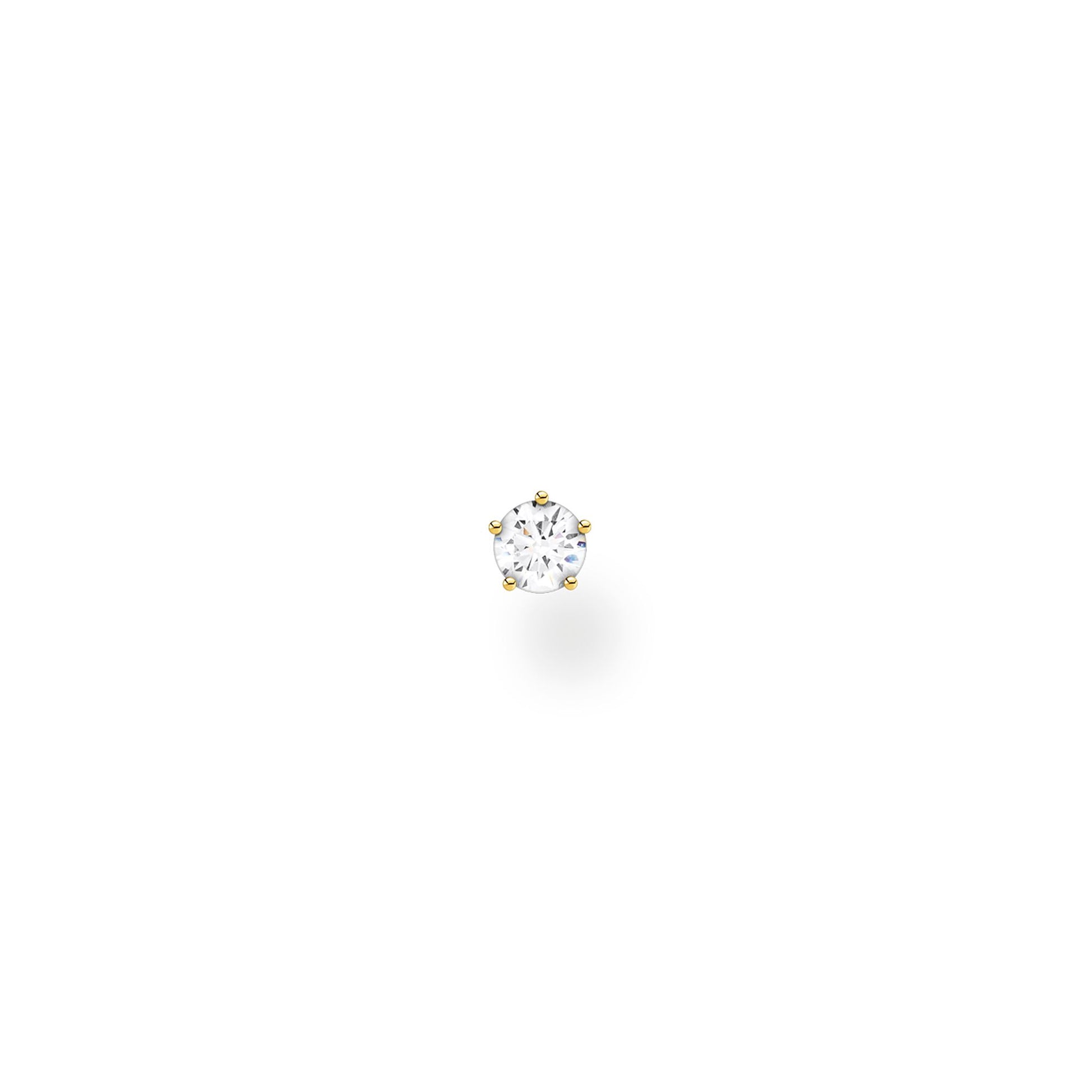 Matches perfectly with the Curated-Ear-Trend: The small single ear stud sets glittering highlights. The cool 925 Sterling silver underlines the white zirconia stone right at the centre of the ear stud. The stone is hand-placed into the delicate prong setting – all the light can fall through the zirconia and creates dazzling effects on your earlobe. Combine this solo ear stud with other earrings and pieces from the Charming Collection and express your individuality!